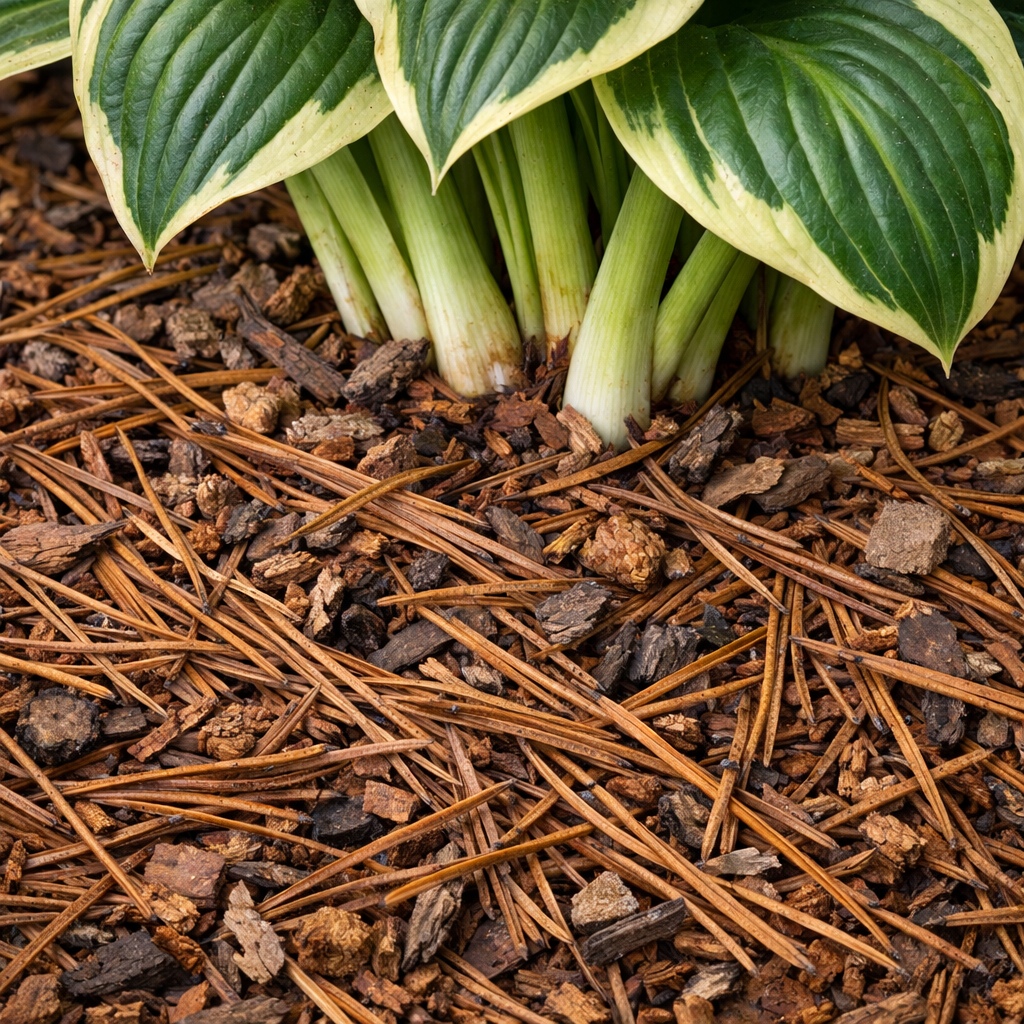 Fine compost and leaf mould retain moisture, which slugs love. Using drier, coarser mulches around hostas can help reduce slug activity.