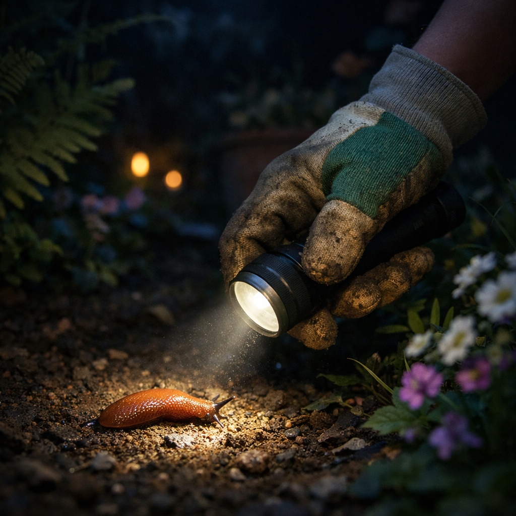 Slugs are most active in the evening or early morning. A torch and gloves are often all that is needed. Removing slugs regularly during peak seasons can significantly reduce damage over time.