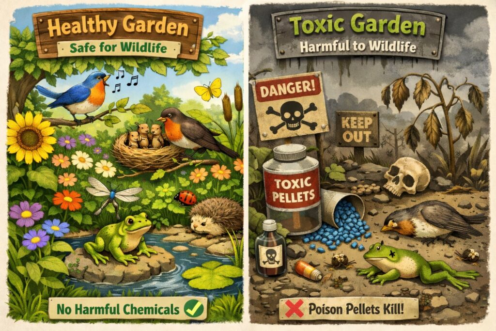 Some products are toxic to birds, hedgehogs, frogs, pets, and beneficial insects. Even iron based pellets, which are marketed as safer, can disrupt soil health and still pose risks if overused.