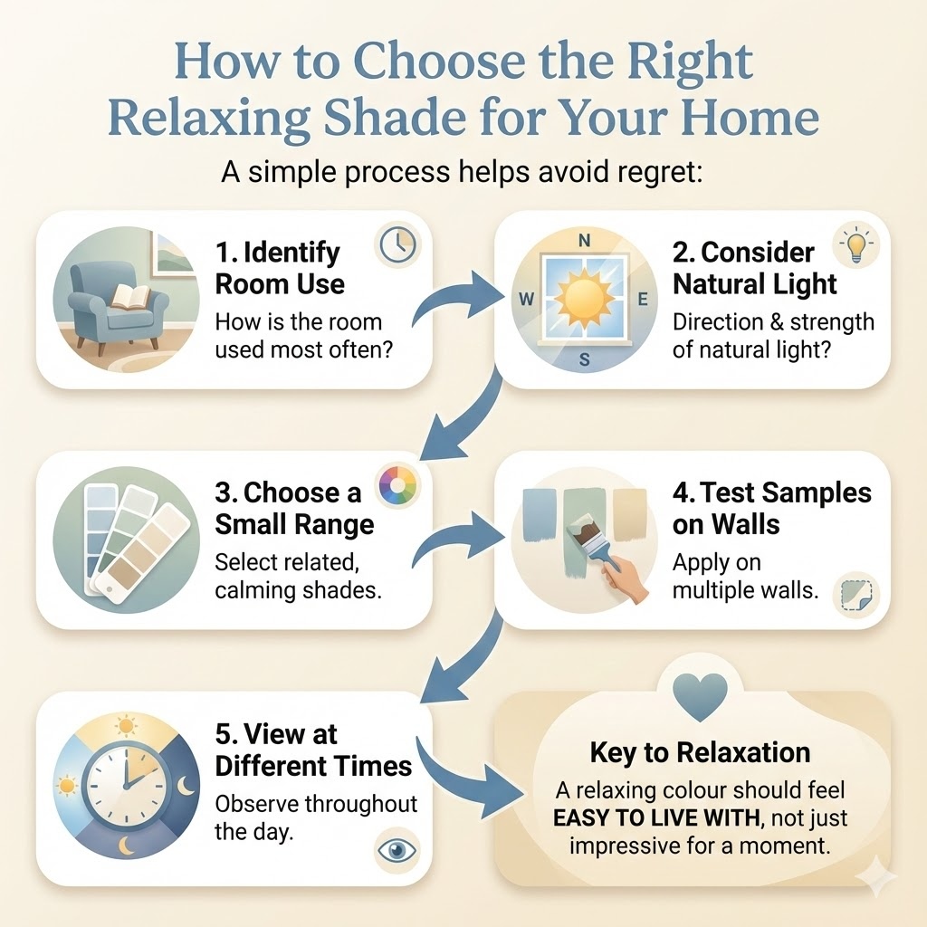 A relaxing colour should feel consistent and comfortable throughout the day, not just at one moment.