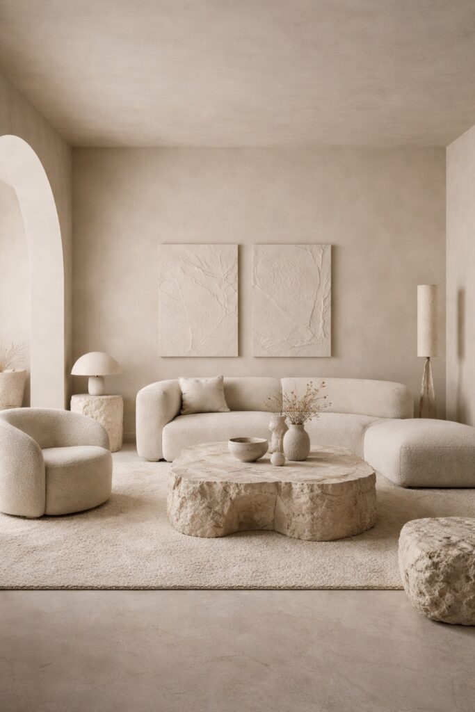 Pure white can feel harsh in relaxation spaces. Softer neutrals with warm undertones tend to feel more forgiving and comfortable.