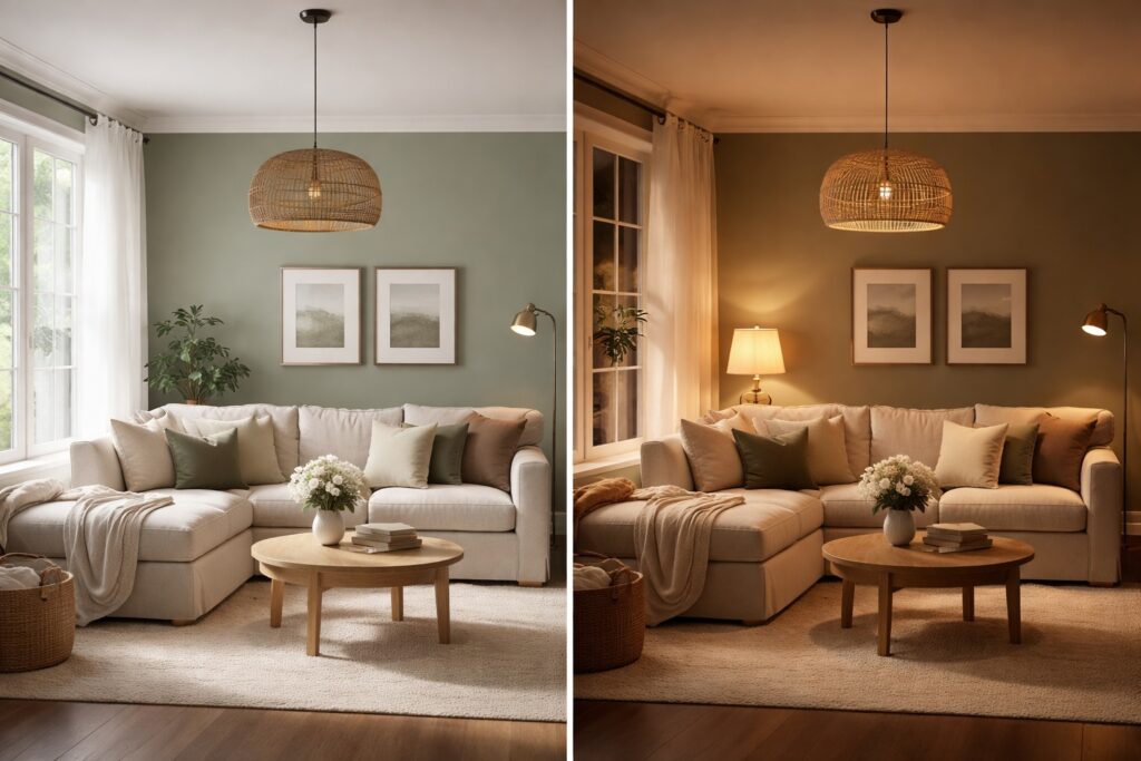 A paint shade that feels calming in daylight may feel flat or dull under artificial light if the lighting temperature is wrong. Warm lighting tends to enhance earthy tones and warm neutrals, while cooler lighting works better with blues and some greens.