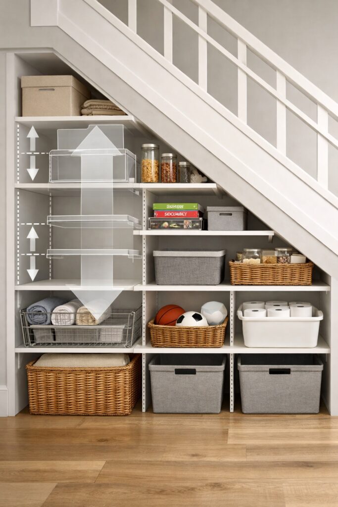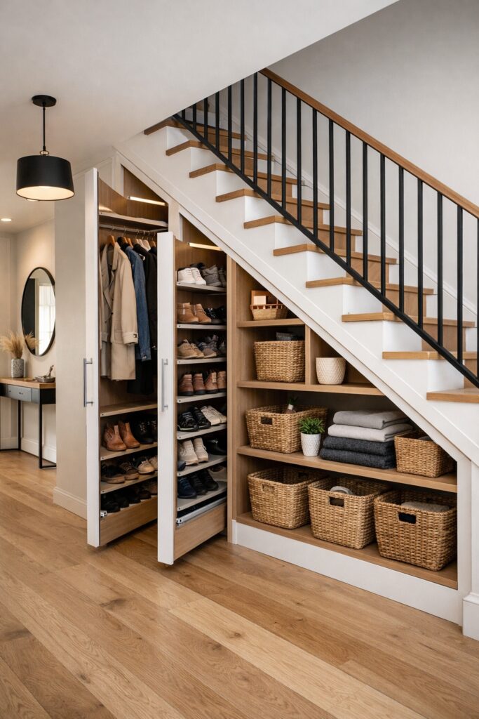 Because under-stairs areas are often located in hallways or living spaces, visual clutter can quickly become noticeable.