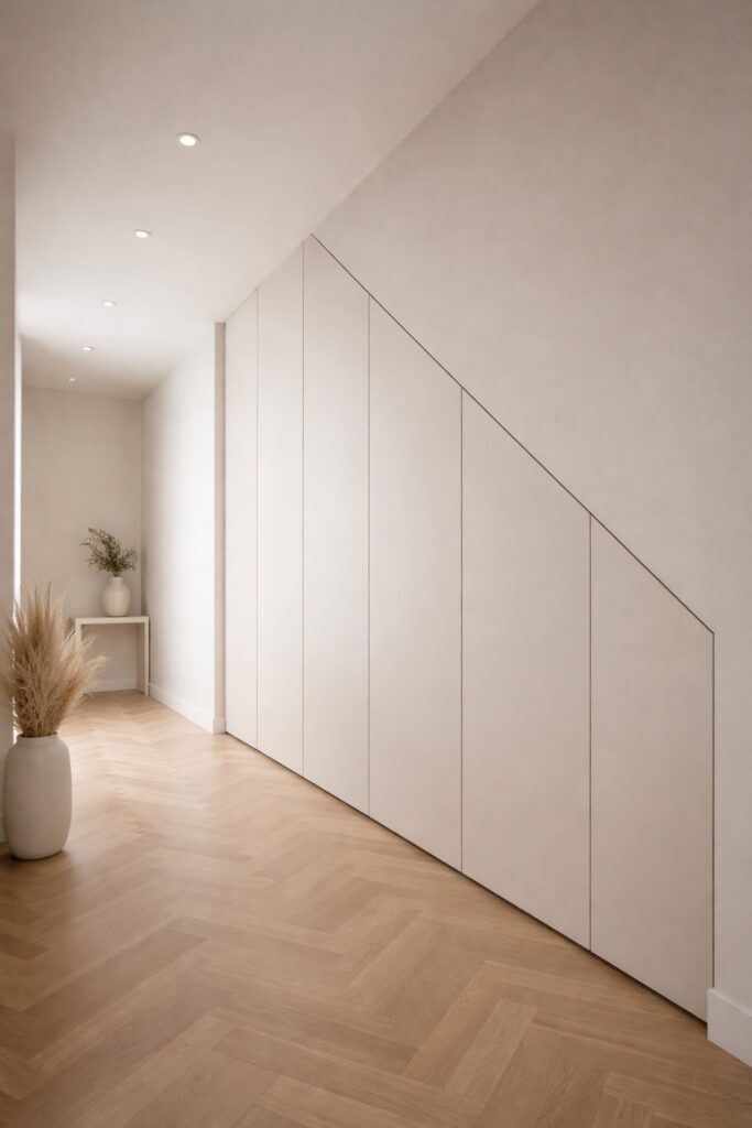 The most successful solutions prioritise accessibility, clarity, and calm, turning an awkward area into purposeful storage that genuinely supports daily life.