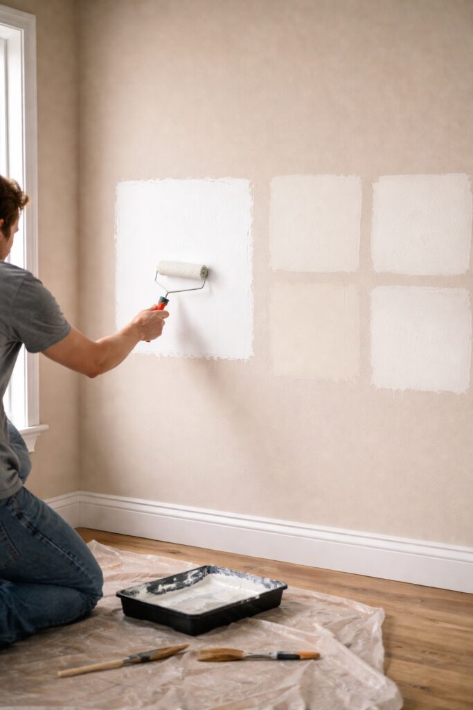 Testing white paint should always be done directly on the wall rather than on small cards. Large samples reveal undertones far more clearly and show how the colour responds to light throughout the day. Advice on testing paint samples on walls recommends viewing your samples in both natural and artificial light before making a final decision. This step helps avoid costly mistakes and ensures the white you choose works in real conditions, not just in theory.