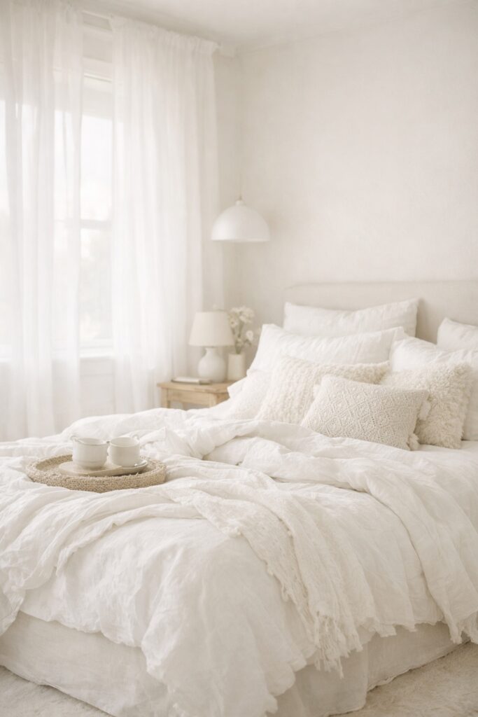 Warm whites support a calming atmosphere and work well with layered textiles. Cooler whites can work in minimalist bedrooms but benefit from warmer accents.