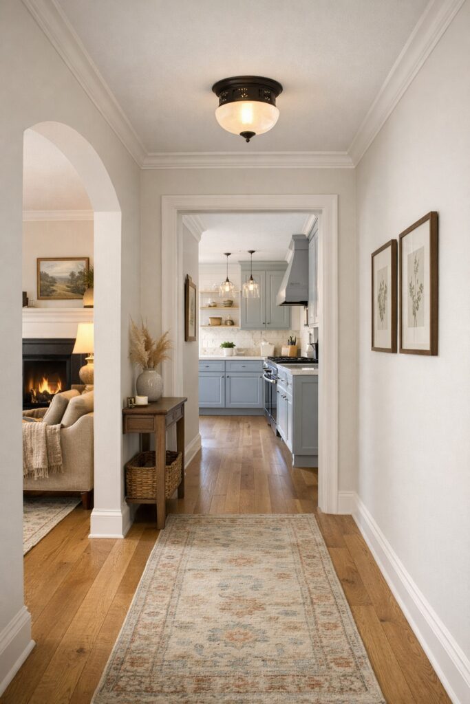 Warm whites also complement natural materials beautifully. Wood, stone, leather, and brass all feel richer against a warm white backdrop.